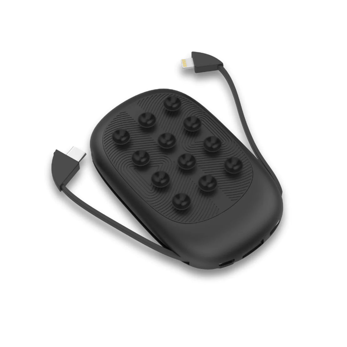 10000mAh wireless powerbank with unique pattern design of black suction cups and built-in multi-charging cables. Safe powerbank with great features such as over-voltage, over-current, short-circuit and built in battery Protection. Light-up feature when engraved. Material: ABS + rubber. With LED indicator, li-polymeter battery. Input 5V/2A (micro) and 5V/2A (typeC) / Output 5V/2A (USB). Self Charging time: 4hrs (2A adaptor)